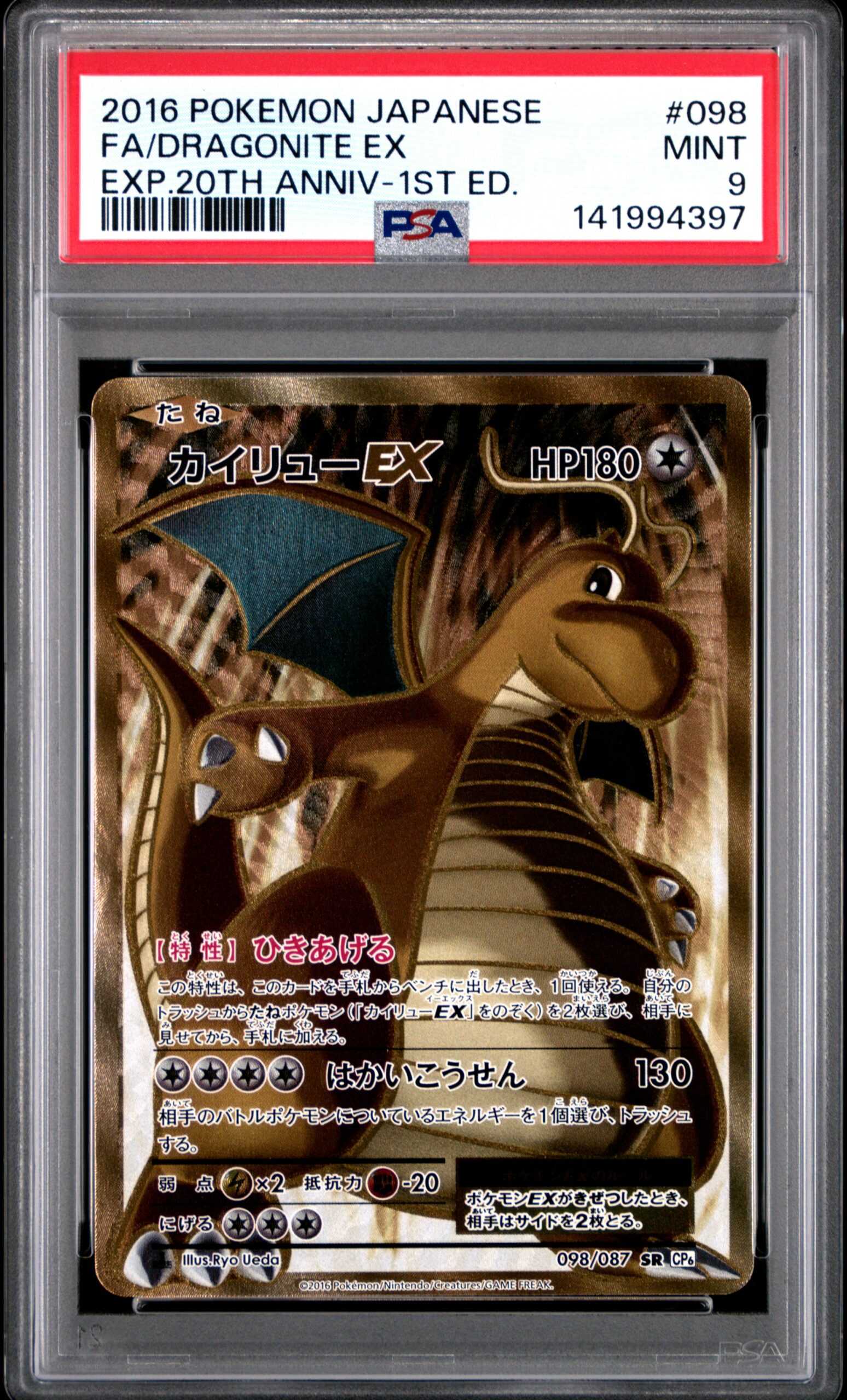 2016 POKEMON JAPANESE EXPANSION 20TH ANNIVERSARY 098 FULL ART/DRAGONITE EX 1ST EDITION