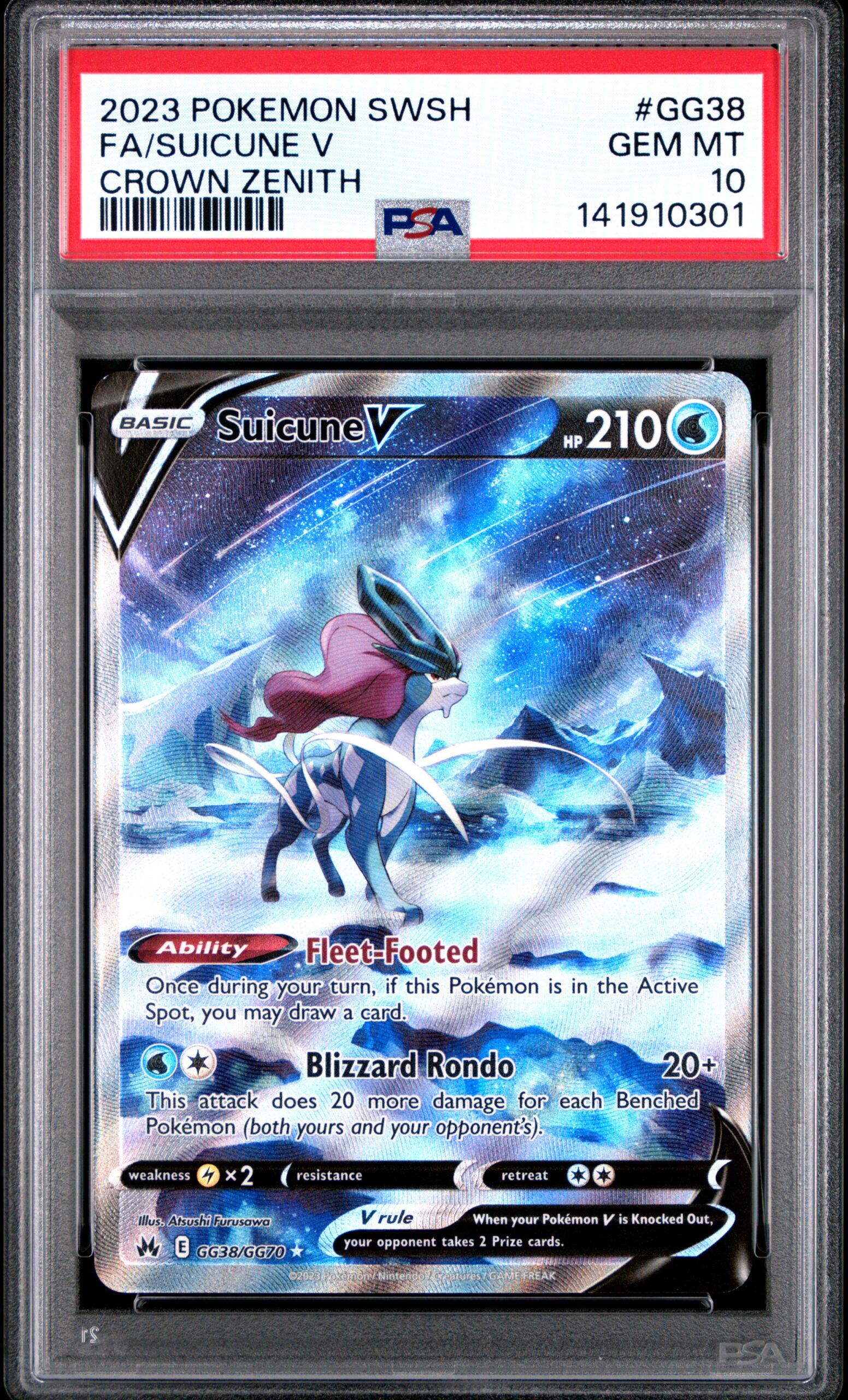 2023 POKEMON SWORD AND SHIELD CROWN ZENITH GG38 FULL ART/SUICUNE V PSA GEM MT 10